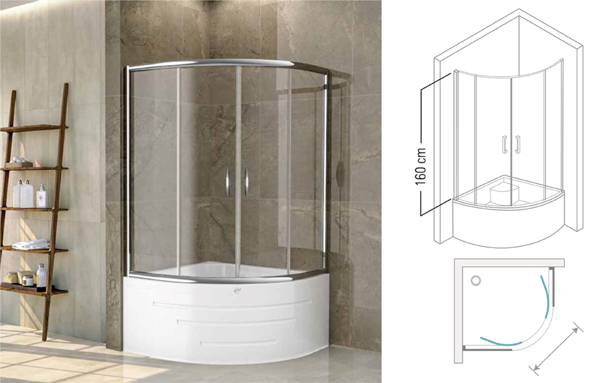 Küvet Üzeri İki Kapılı Yan Panolu Ön Cephe Duşakabin Şıklık ve pratik kullanımın mükemmel birleşimi. Modern tasarım ve ferah iç hacimle banyonuza özel bir dokunuş.