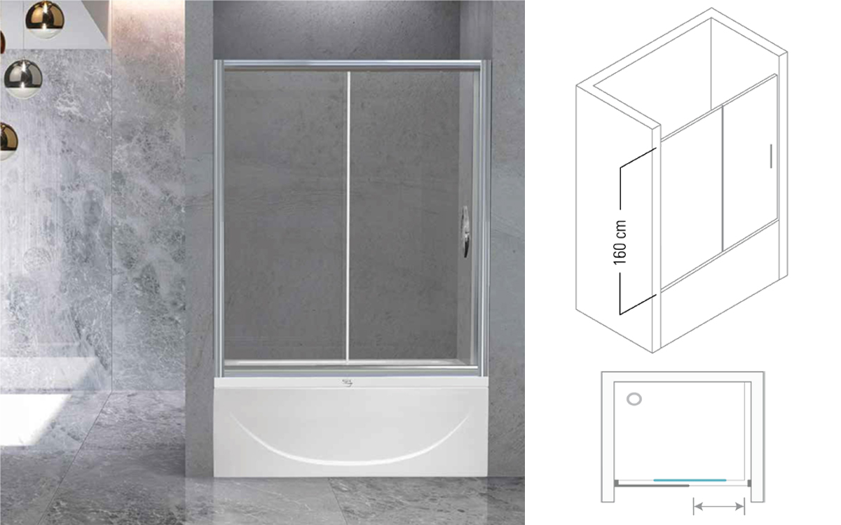 Küvet Üzeri İki Kapılı Yan Panolu Ön Cephe Duşakabin Şıklık ve pratik kullanımın mükemmel birleşimi. Modern tasarım ve ferah iç hacimle banyonuza özel bir dokunuş.