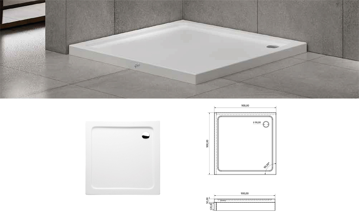 Düşük profili, kare flat duş teknesine modern bir görünüm kazandırır. Bu tasarım, banyo alanınızda daha geniş ve ferah bir his yaratır.